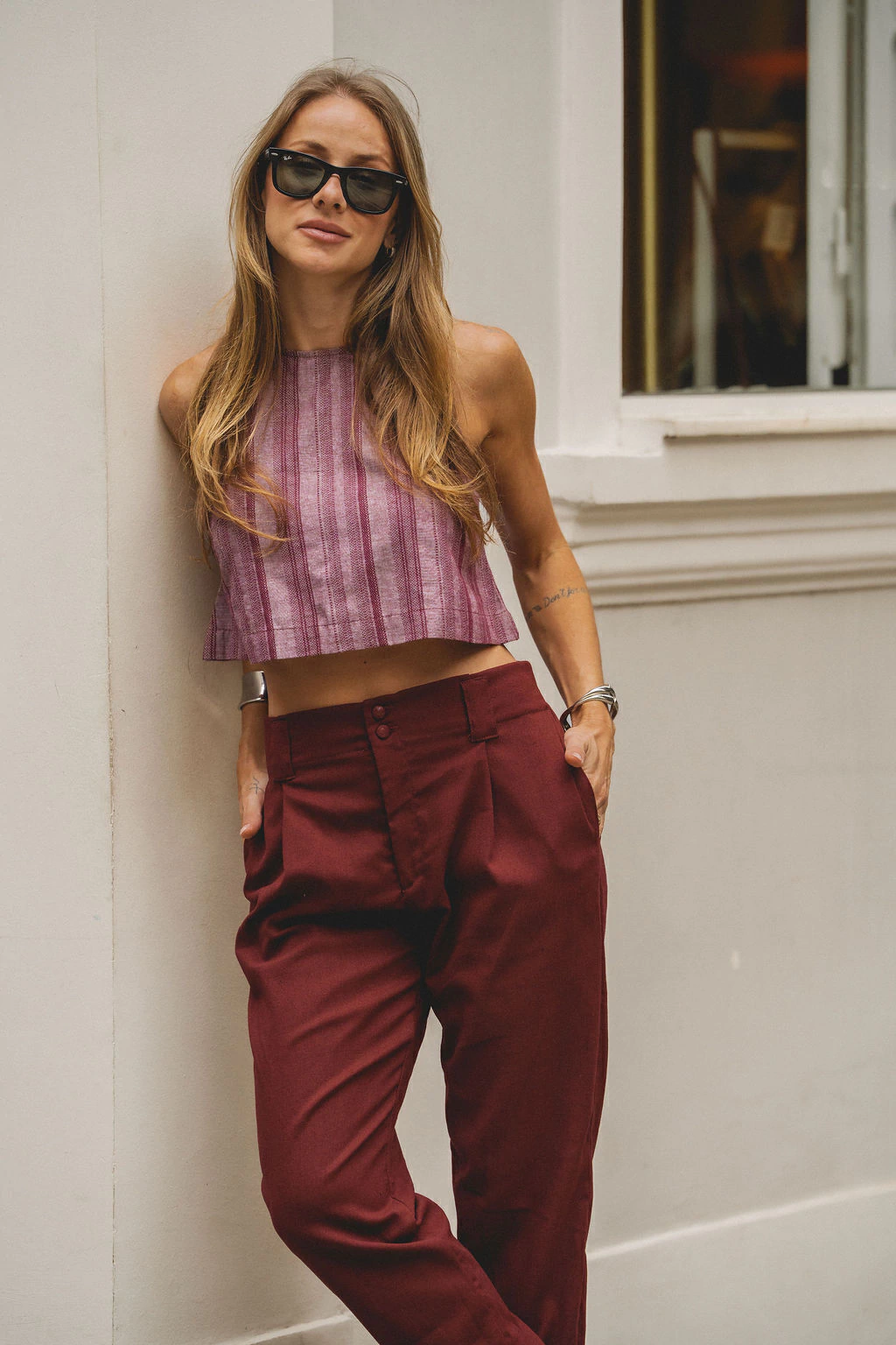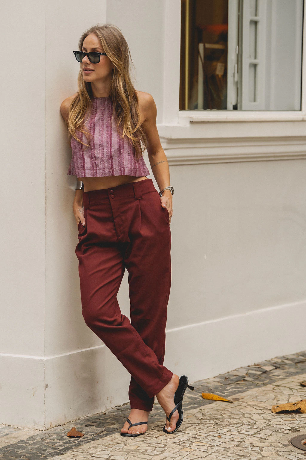Composição: 68% viscose, 30% linho e 2% elastano.