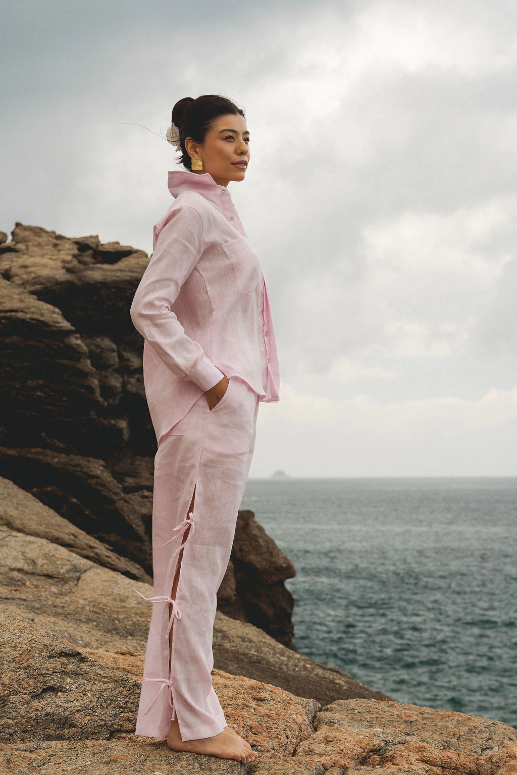 Peça feita em 100% linho, matéria prima nobre, resistente e natural, trazendo frescor e respirabilidade às peças.