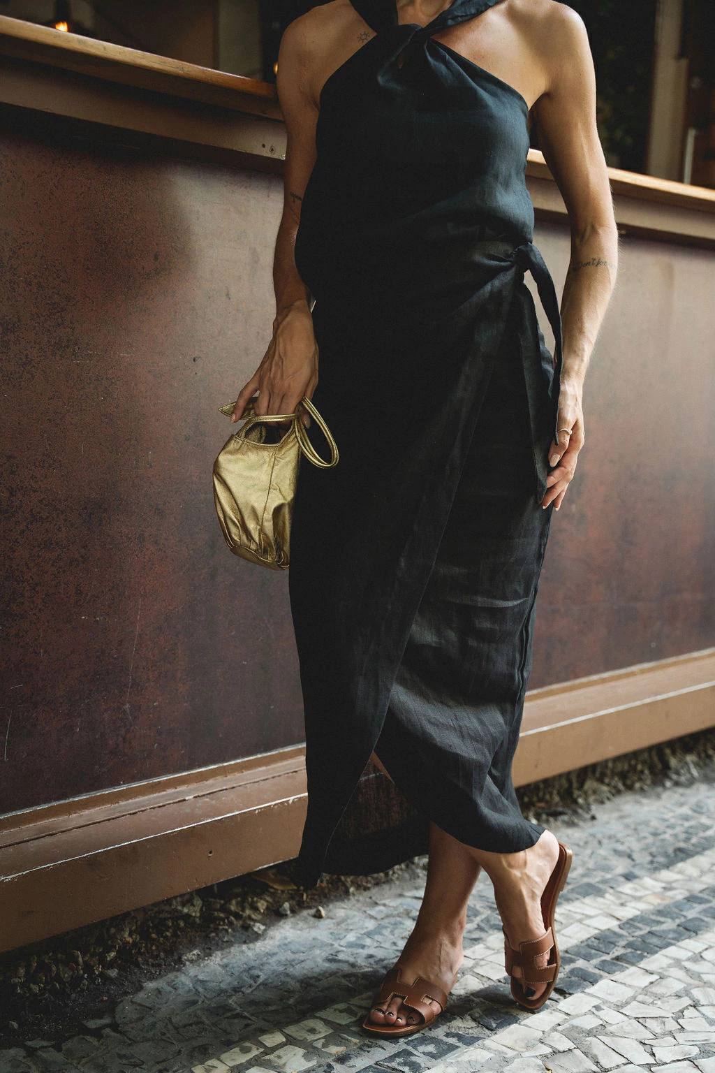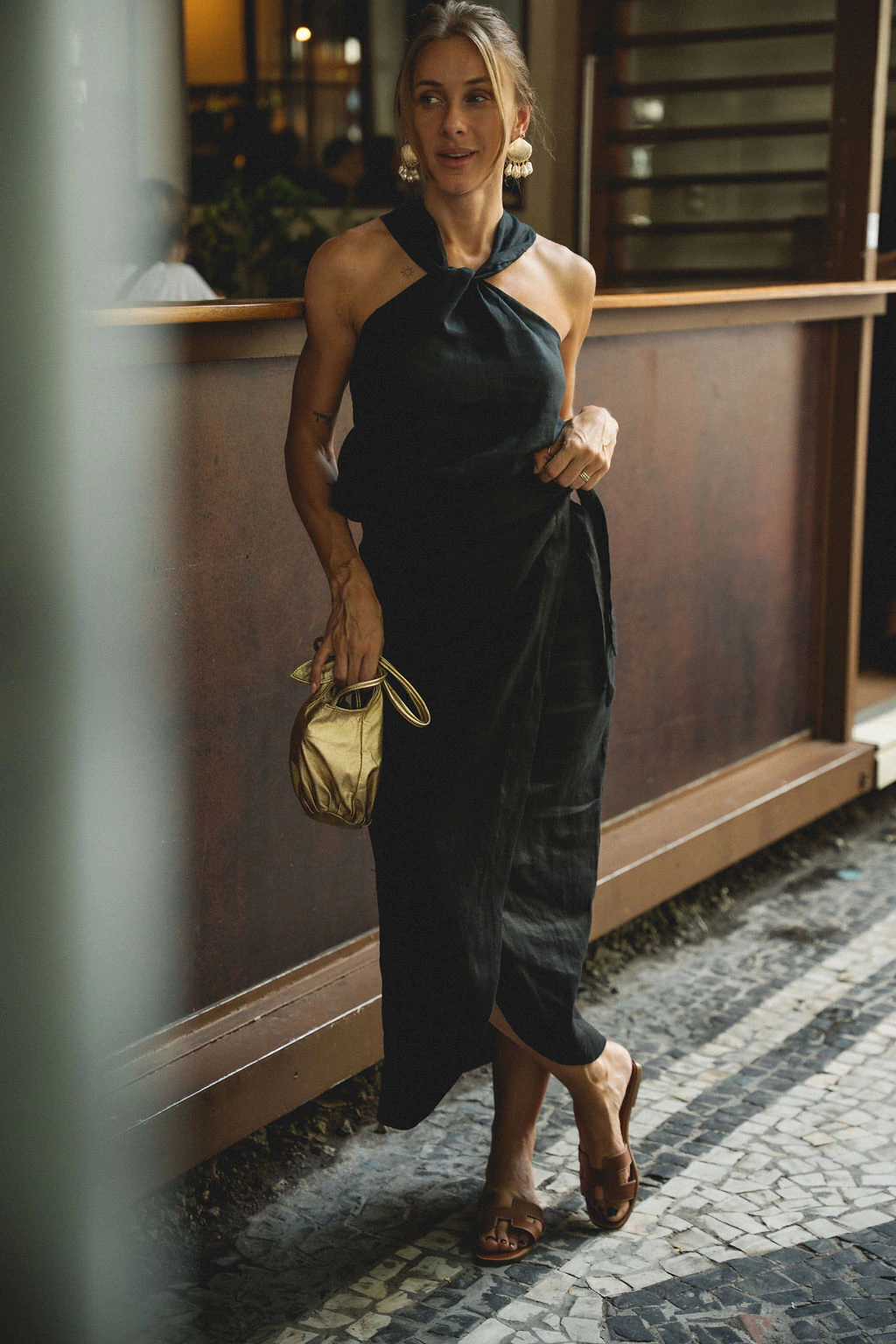 Peça feita em 100% linho, fibra 100% natural, trazendo frescor e respirabilidade às peças. Possui caimento naturalmente mais estruturado do que outros tecidos, o que dá um toque de elegância ao look. É considerado também um dos tecidos mais sustentáveis do mundo.